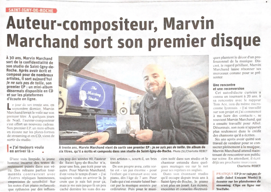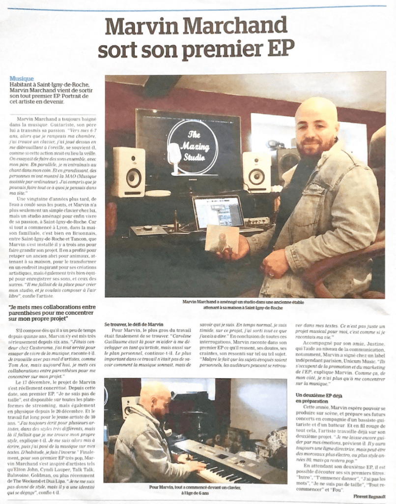 Le JSL (Journal de Saône-et-Loire) qui avait déjà rencontré l’artiste en septembre, à l’occasion de la sortie de ses premiers singles, lui a de nouveau consacré une pleine page dans son édition du 29 décembre.